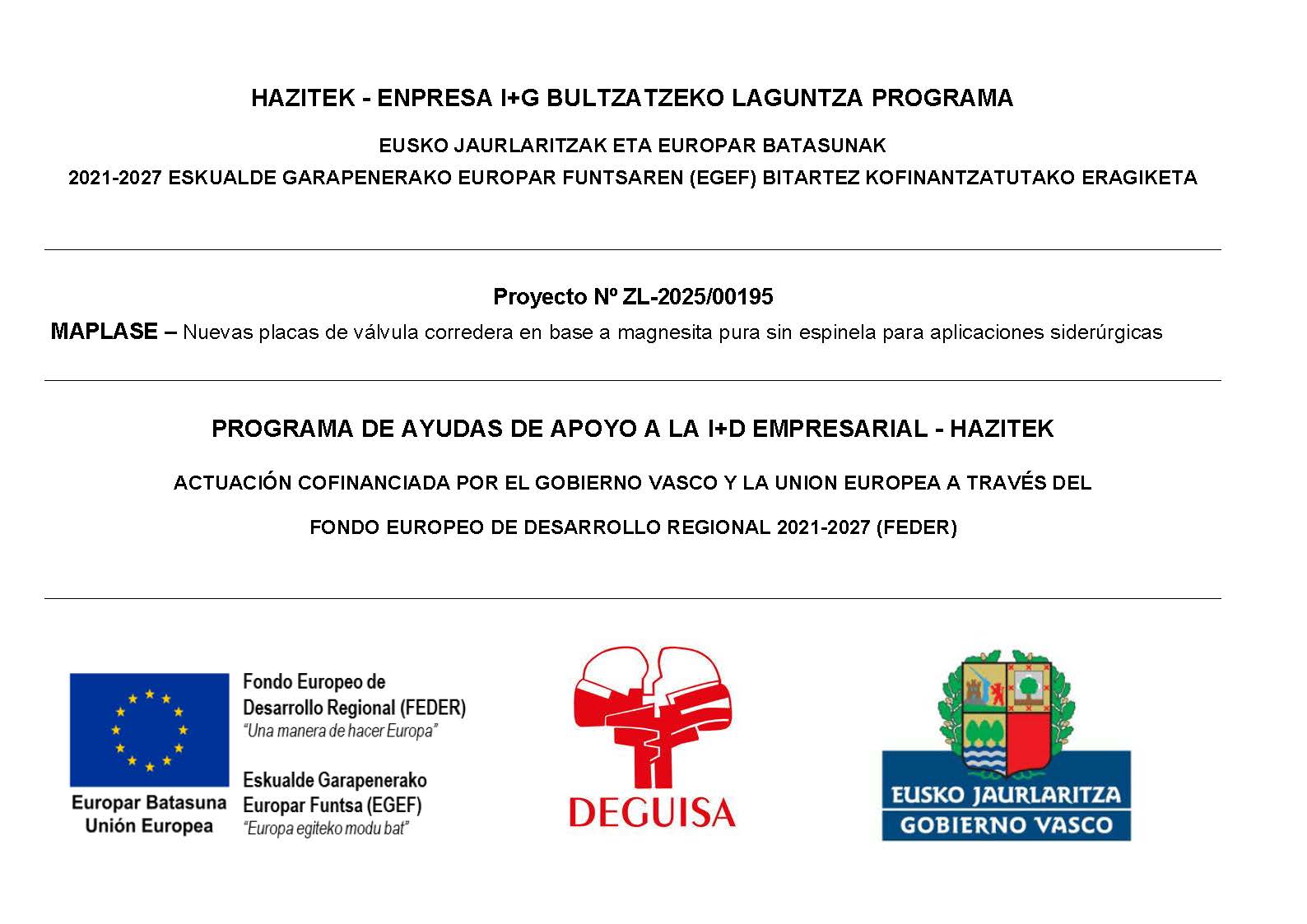 Deguisa participa anualmente en proyectos de Investigación, Desarrollo e innovación contando con el apoyo financiero del Fondo Europeo de Desarrollo Regional (FEDER) de la Unión Europea y del Gobierno Vasco.
